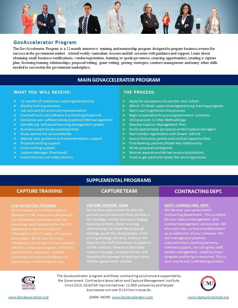 Begin preparation to pursue government contracts
